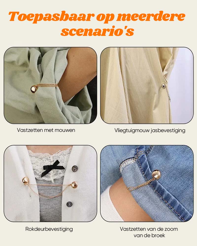 - Maak niet alleen baggy shirts stijlvol met onze magnetische clips die zijn ontworpen om je kleding taps toe te laten lopen! Je kunt je kleding op veel manieren stylen, zoals door ze vast te klikken aan shirts, mouwen, rokken, jurken en broeken. Klik ze gewoon vast om ze te stylen!